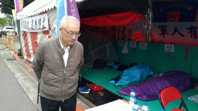 前台湾地区副领导人吴敦义19日至“立法院”与绝食抗议的军公教团体代表交换年金改革意见。(图/翻摄自吴敦义脸书)