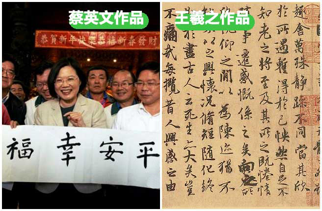 蔡英文、王羲之作品比较。(台湾“中时电子报”合成图)