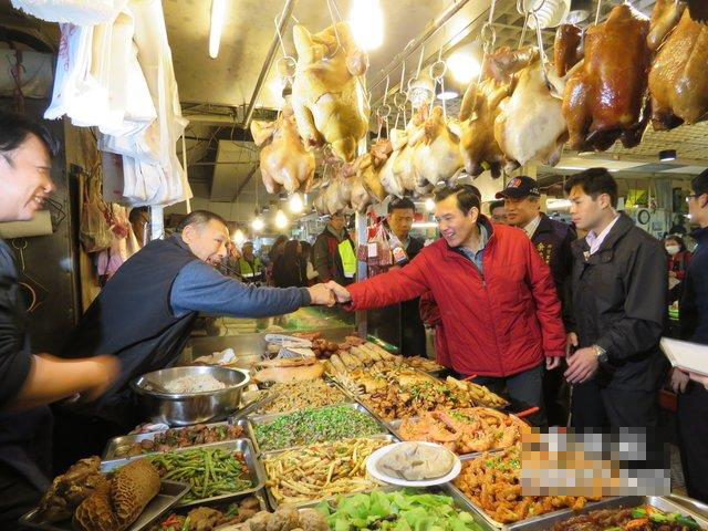 马英九大姐马以南陪同下赴老家附近的兴隆市场购买年菜。(图片来源:中评社)