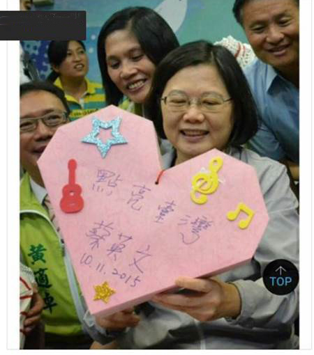 网友指出蔡英文“点亮台湾”四个繁体字全都写错。(台媒图)
