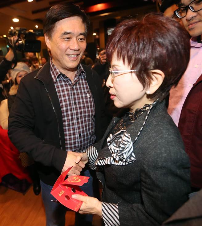 洪秀柱与郝龙斌互相致意(图片来源:“中时电子报”)