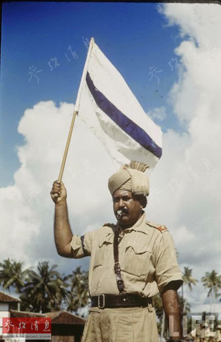印军方面,同样发生过600人部队成建制叛逃的恶劣事件。再加上其他叛变投向日方的印军,新加坡战役期间英军逃兵总数估计超过了1.2万人。图为正挥旗吹哨指挥演练的驻新加坡印军拉吉普特士官。