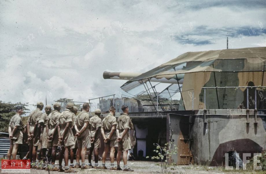 长久以来,史学界流传着新加坡失守是因为英军要塞炮都对着南面的海峡水域,不能调转炮口去射击背后的陆上目标所致。其实这纯属误传,当时英军大部分要塞炮都能转向北面轰击陆地目标,问题在于为它们准备的弹药却大都是用于打击军舰的穿甲弹,储备的高爆弹极少。图为驻新加坡英军的岸防重炮。这些本该予日寇以重创的大口径要塞炮,却因炮弹问题而成了摆设。
