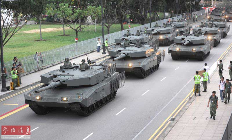 2010年,国庆日阅兵式上的新加坡陆军豹2SG坦克群。
