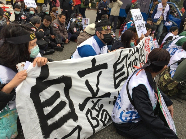 台铁工会2月9日在蔡英文办公室前抗议。(图片来源:台湾《联合报》)