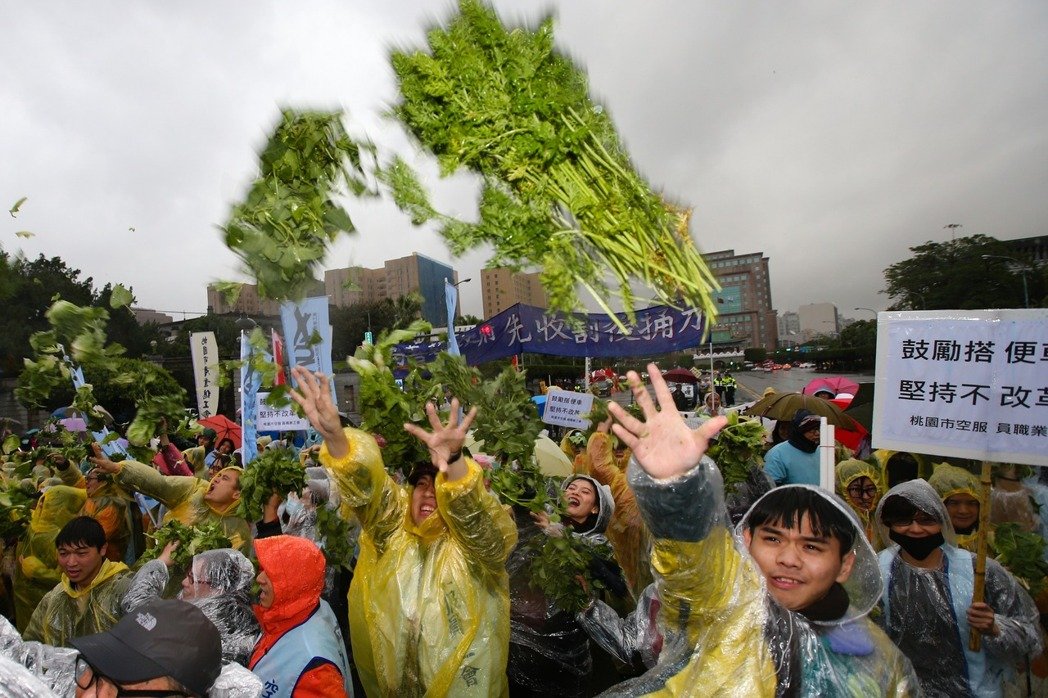 据台湾《联合报》报道,抗议者下午从台“劳动部”出发游行抗议,行经“交通部”最后到达蔡英文办公室前的凯达格兰大道。过程中,除了演出行动剧讽刺当局,还向蔡办投掷一堆“烂菜”表达心中怒火。(中国台湾网 王思羽)
