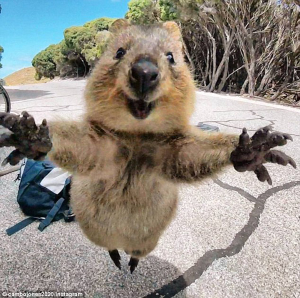 【环球网综合报道】据英国《每日邮报》2月26日报道,近日,来自澳大利亚西澳洲Landsdale地区的坎贝尔·琼斯(Campbell Jones)抓拍了一张短尾矮袋鼠的可爱近照。照片上,这只小家伙奋力跃起,嘴角绽开大大的笑容,张开双臂对着镜头,仿佛在说:“请给我一个拥抱!”