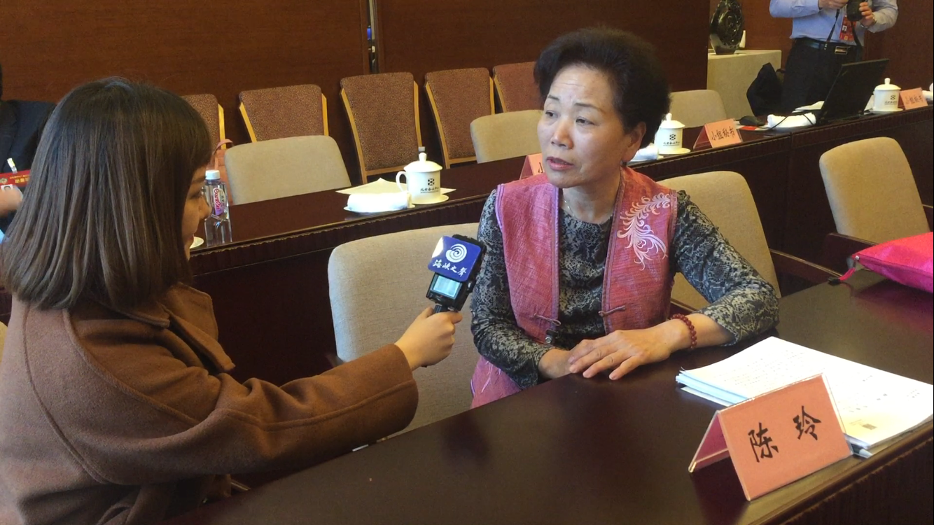 政协台联界别小组讨论会间歇,台籍委员陈玲接受本台记者冉思清采访