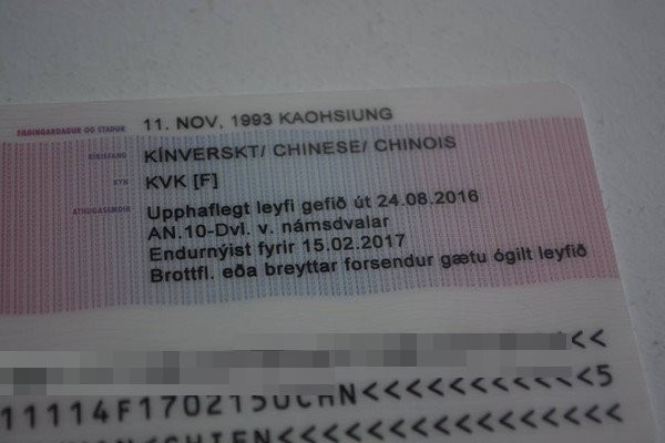 台湾东森新闻云11月19日报道,许多台湾人到“国外”会面临“国籍问题”,日前,一名李姓女网友到冰岛当交换学生,对居留证上的“CHINESE”十分在意,花了3个月时间和当地移民署交涉,最后ID被改为“无国籍”(STATELESS),且出生地从“高雄”变“台湾”,让她无奈表示“应该可以勉强算我成功一半吧?”