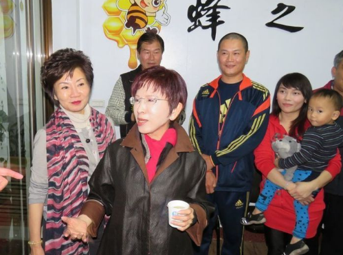 中国台湾网3月13日讯 据台湾《联合报》报道,国民党主席洪秀柱13日傍晚,抵苗栗县头份市拜访青年养蜂农刘国科,亲切的与刘国科2个年幼的儿子打成一片,童言童语玩亲亲,一起喝鲜甜的蜂蜜水。洪秀柱以采蜜被蜂群攻击、叮咬,都要咬紧牙关忍下来,期勉基层党工,务必做好这次党内选举。