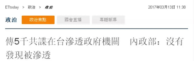 东森新闻云:“传5000共谍在台渗透政府机关 ‘内政部’:没有发现被渗透”↓