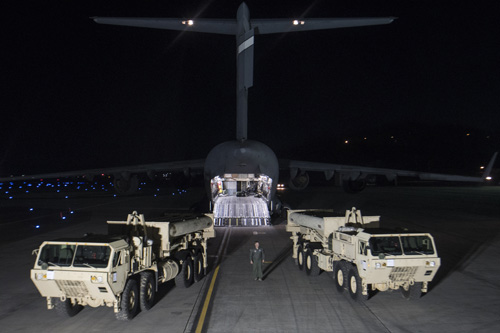 3月6日晚,“萨德”系统部分装备运抵首尔以南约70公里处的美军驻韩国乌山空军基地。新华社发