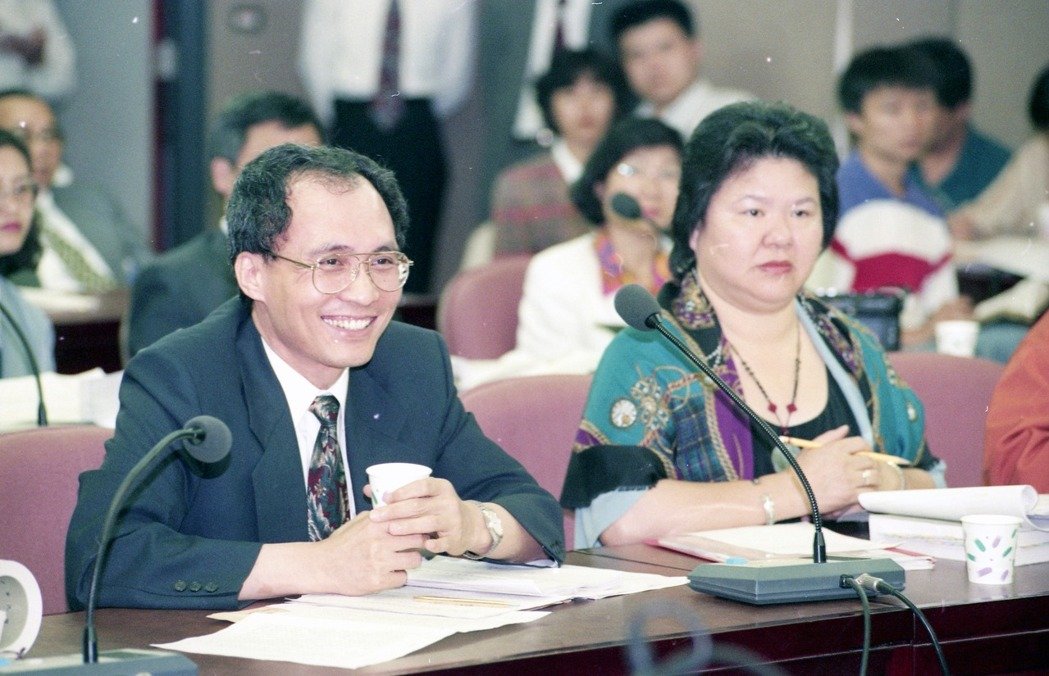 现任“行政院长”林全(左)与高雄市长陈菊(右),1995年为台北市财政局长与社会局长。(台湾《联合》报系资料图)