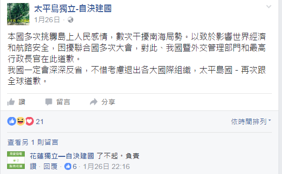 这是2013年《中国日报》上刊登的一篇脑洞极大的文章的开头,一语成谶,2016年初,facebook上出现了“花莲独立—自决建国”的粉丝专页,引发了台湾各县市的“独立”高潮: