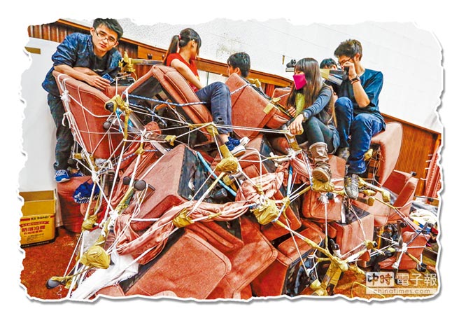 图为2014年时学生占领“立法院”议场、在议场出入口堆栈座椅,限制人员进出的画面。(台湾“中时”报系资料图)