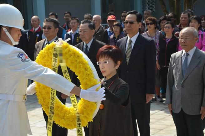 国民党主席洪秀柱5日到桃园市慈湖陵寝谒陵。(图片来源:台湾《中时电子报》)