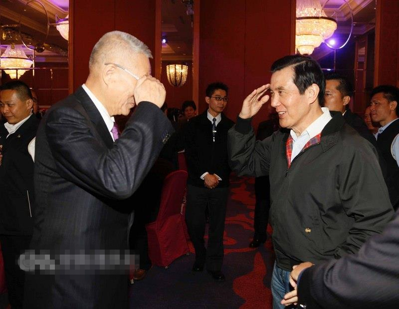 2017年2月8日,前台湾地区领导人马英九和前台湾地区副领导人吴敦义同场出席活动时互相敬礼。(图片来源:台“中央社”)