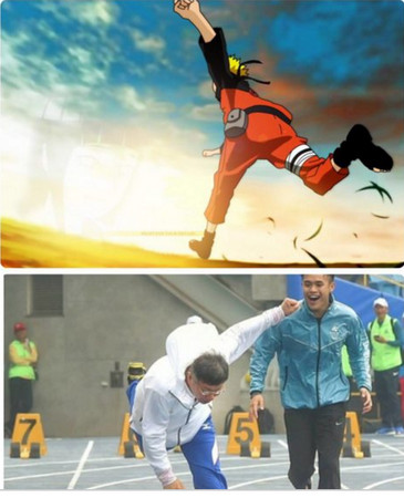 目前已经有网友将柯P与旋涡鸣人、足球做结合,画面完全无违和。(图取自网络)
