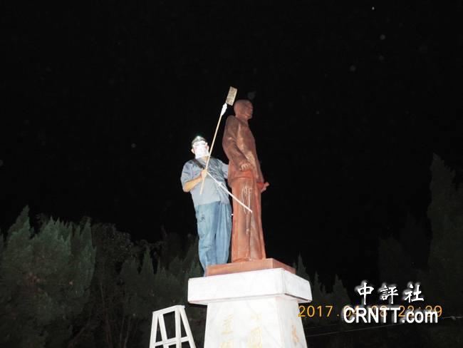 环球网综合报道 据香港中评社4月9日报道,自称是“台湾建国工程队”的“独派”团体8日深夜又出动,“斩首”新北市新店区莒光路的蒋介石铜像。