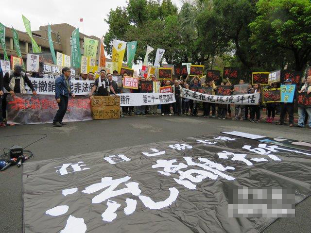 近百台湾少数民族人士包围“行政院”,痛斥“在自己的土地上流离失所!‘蔡政府’不要脸!”(图片来源:中评社)