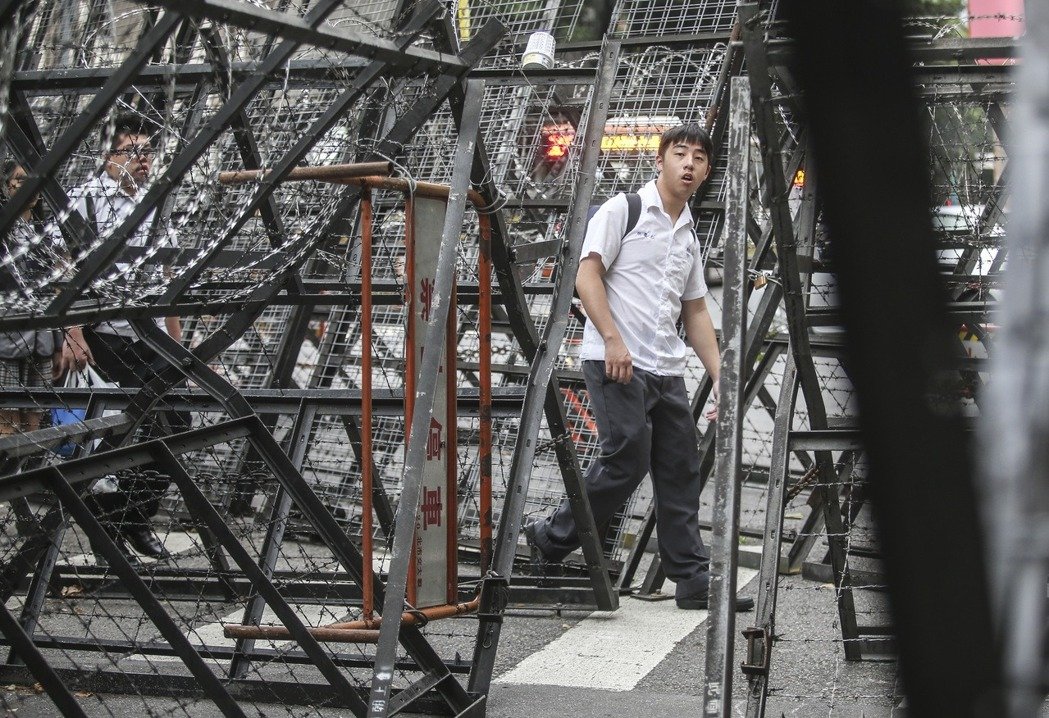 台当局“立法院”、“监察院”、蔡英文办公室等机关周边架设严密的蛇龙和拒马。(图片来源:台湾《联合报》)