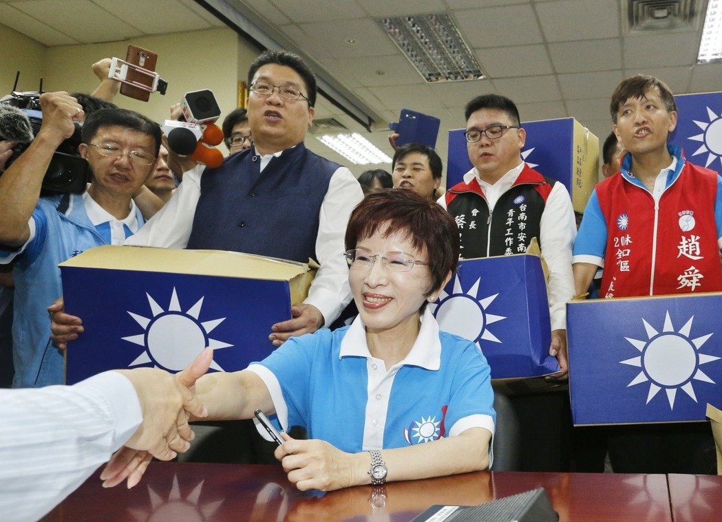 今日抽签作业中,吴敦义派出太太蔡令怡出马;郝龙斌则由竞选发言人徐巧芯和金大钧代表抽签;洪秀柱阵营派出前国民党青年团长李昶志;詹启贤则是交由年轻总干事林政纬;韩国瑜委由其特别助理张席维代表抽签。潘维刚的代表是总干事高扬升和执行长李裕海。