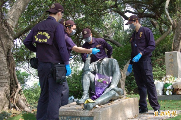 台当局忙派人对被斩首的八田与一铜像取证(图片来源:《自由时报》)