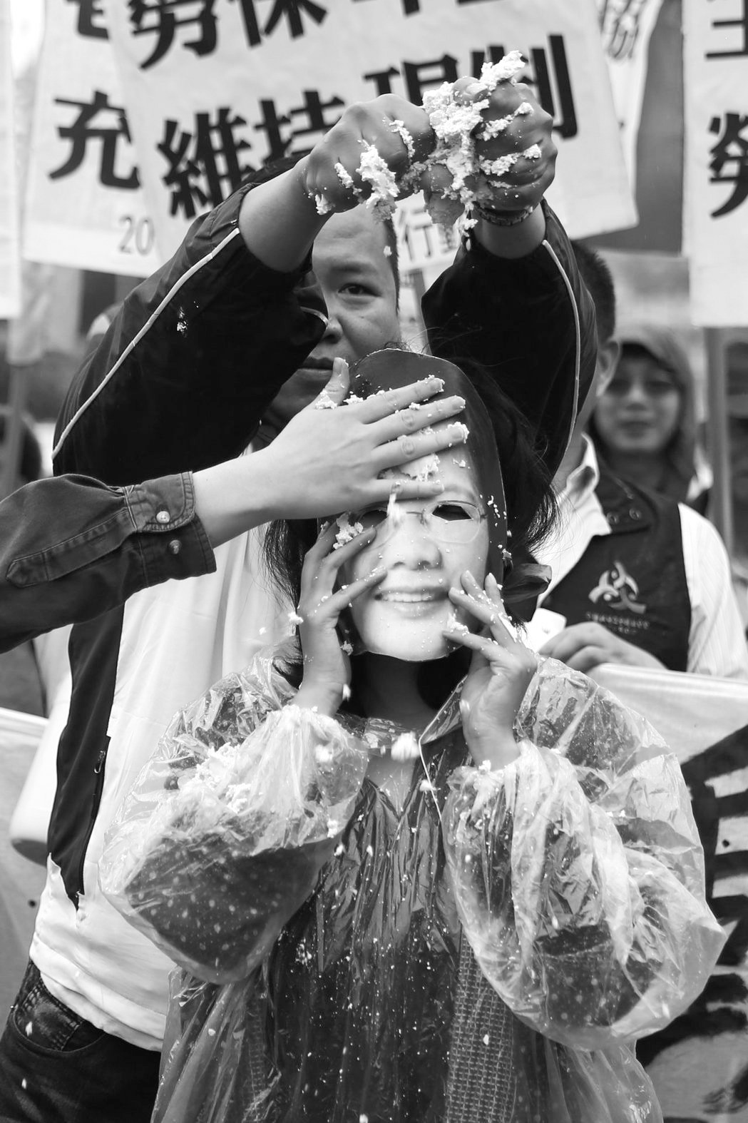 台湾民众抗议蔡英文吃劳工豆腐。