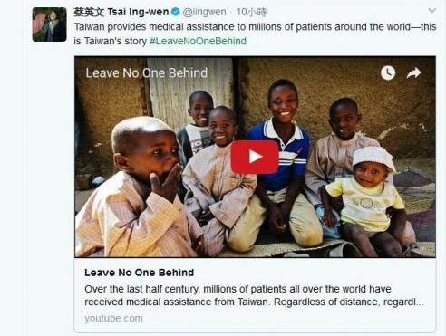 为让台湾参加WHA,蔡英文2日再度发推特。(图片来源:台媒)