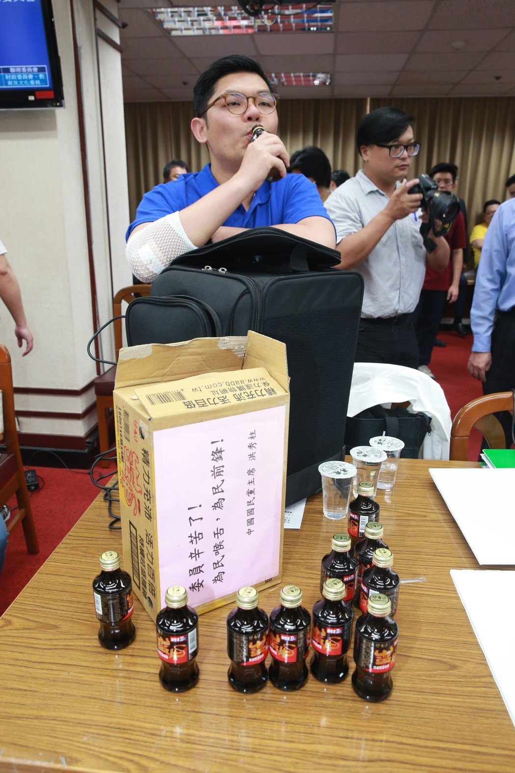 今日蓝绿两军再度爆发激烈推挤冲突,人数占优的民进党团以人墙护卫主席台,国民党团则不断高喊“时程减半,八年改四年”等口号。蓝、绿一度在主席台前混战、推挤,哨子、喇叭满天响,面粉满天飞,不少“绿委”都灰头土脸。中国国民党主席洪秀柱一早特意送来一箱的“蛮牛”(维生素功能饮料),为国民党“立委”加油,要他们“喝了,再上!”。