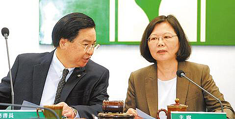 绿营在野时期,吴钊燮(左)曾任民进党秘书长兼民进党驻美代表(台媒图)