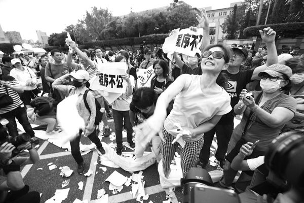 24日,反同团体在得知“释宪”结果后怒撕标语。