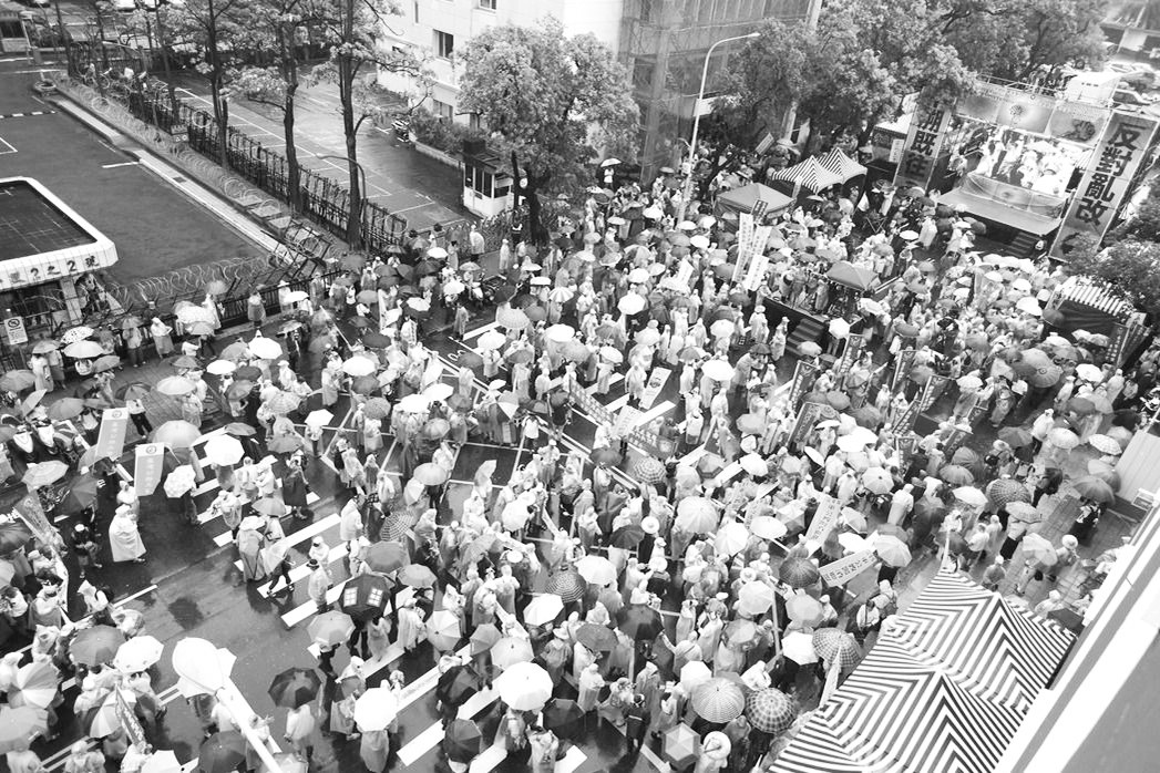 “立法院”临时会14日开议,场内打得火热,场外也风起云涌。15日下午,退休军公教再度上街,以“警察节向警察致敬”为口号,兵分四路,包围“立法院”等机关,许多抗议民众不畏风雨涌入现场。联合新闻网称,虽然台北下起大雨,但根据“全国公务人员协会”的统计,超过3万人走上街头。下午4时,抗议民众准时开始游行。他们从“警政署”出发,走到“行政院”后转往“总统府”前的凯达格兰大道,最后再度回到“行政院”,并坐在门口抗议。“全国公务人员协会”理事长李来希称,如果政府没有响应,他们不会离开。他说,这场战争不会因为表决输就结束,这是法律战、理论战,也是司法战,最后会变成选战,他要拉长战线、扩大战场,不会因为表决输就气馁。前台北市长郝龙斌到场支持军公教的抗议活动,他表示,军公教和警消(警察和消防)是社会稳定力量、社会的根本,“今天他们走上街头,若政府不倾听他们的声音,就是动摇国本”。