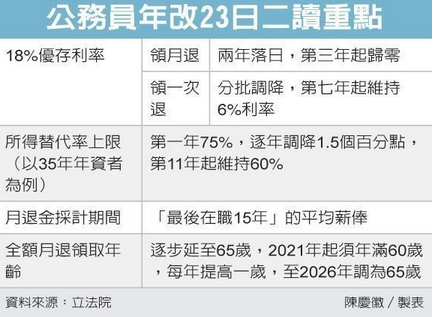 党职并公职: 订定“老年基本生活保障”,因党职并公职年资而溢领的退休金,超出部分的党职年资应该扣除;扣除党职年资后未达退休年资,其退休金额度酌降。