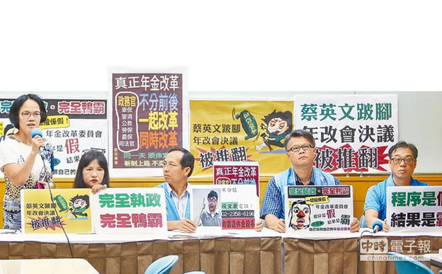 “全教产”25日召开记者会,26日至30日台“立法院”审“年改法案”时,将动员前往施压。(图片来源:台湾《中时电子报》)