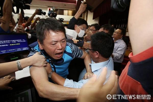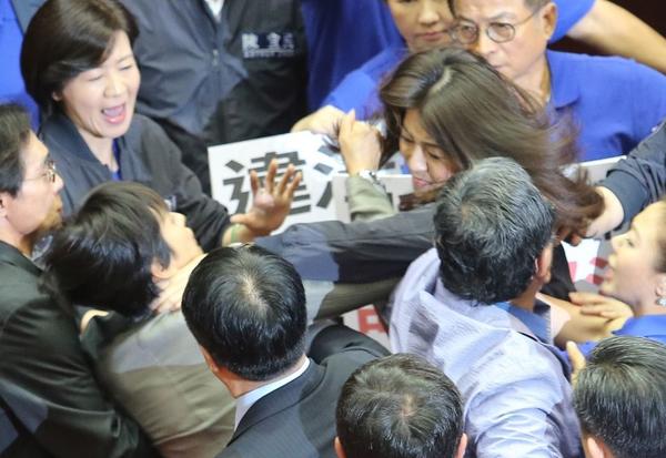 国民党与民进党“立委”为争主席台大打出手。(图片来自台湾“东森新闻云”)