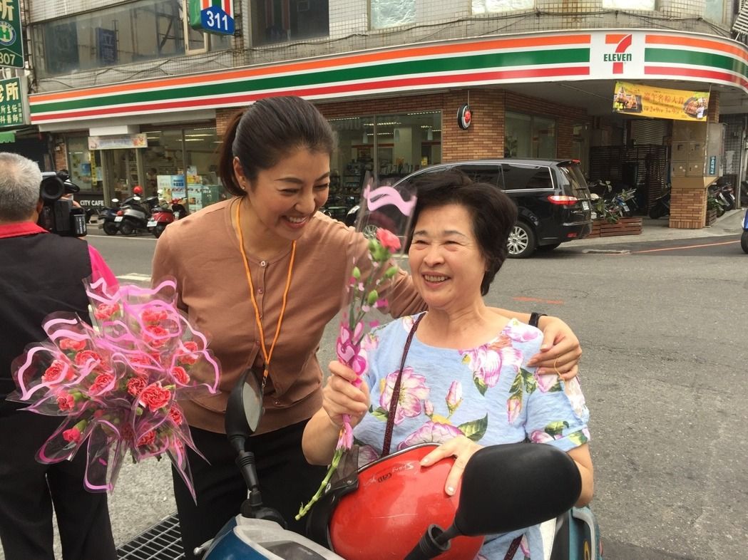 国民党“立委”许淑华(左)亲和力十足,常在南投县的街头,有支持者趋前致意。(图片取自台湾《联合报》)