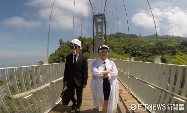 中国台湾网7月26日讯 据台湾“东森新闻云”报道,近日,台湾最长景观吊桥梅山“太平云梯”完工,9月23日即将对外开放,嘉义县长张花冠为了宣传,亲自上阵,打扮嘻哈戴上墨镜,还搭上最近爆红的Freestyle开金口大唱RAP,爆笑的台词、恶搞戏份让人忍俊不禁,虽然从头到尾只有一句歌词,网友仍笑歪直说中毒了“听完整个人被超渡”。