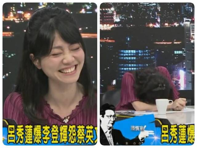 被问到“吕秀莲怨蔡英文不找她”,高嘉瑜数度笑场,最后甚至痛苦到说不出话来,直接笑趴在桌上。(台媒图)
