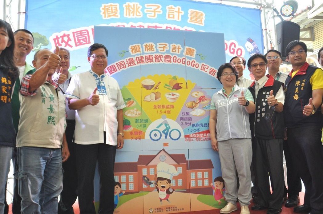桃园市长郑文灿表示,自己身高169厘米、体重79公斤,换算BMI值27.6已经超标,因此加入“瘦桃子”计划。他说,自己靠跑行程当运动,但难免吃多了或是回家吃宵夜;未来首先会重视减少淀粉、油炸食物的摄入。他也表示会多加忌口,以身作则的让减瘦成为全民运动。
