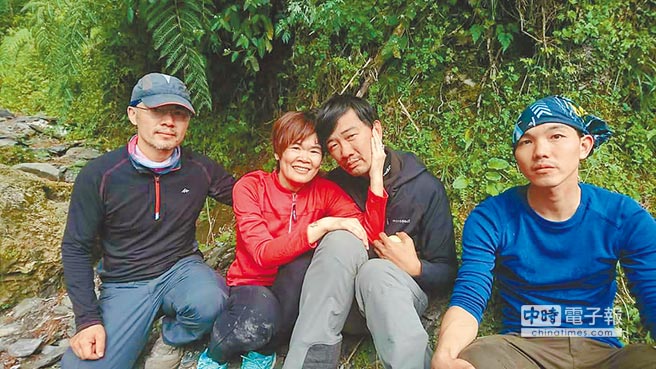 失踪12天的登山客黄致远(右二)获救,其妻和两名队友相当兴奋。(图片来源:台湾《中时电子报》)
