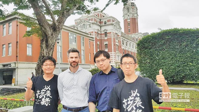 “气候先锋者联盟”成员,左起黄其君、沙伦博格、黄士修、杨家法。(图片来源:台湾《中国时报》)
