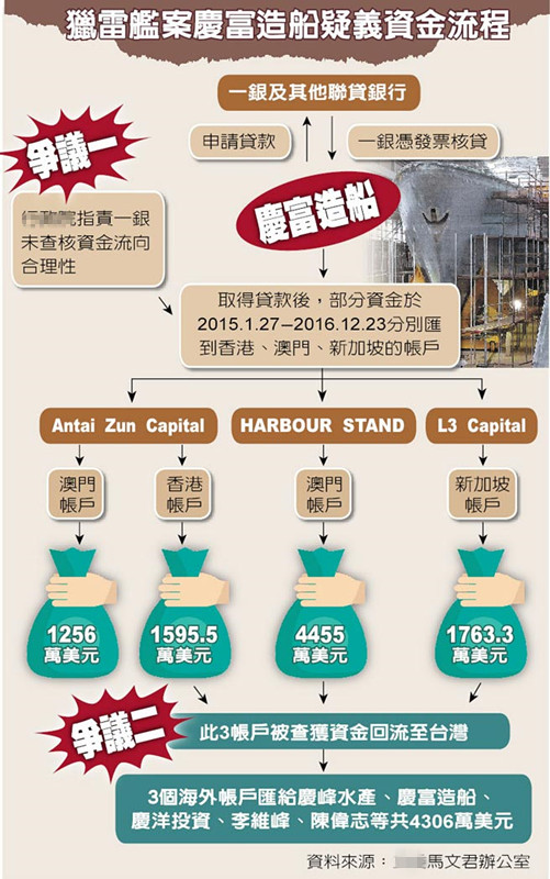 猎雷舰案庆富造船疑义资金流程。(图片来源:台湾《中国时报》)