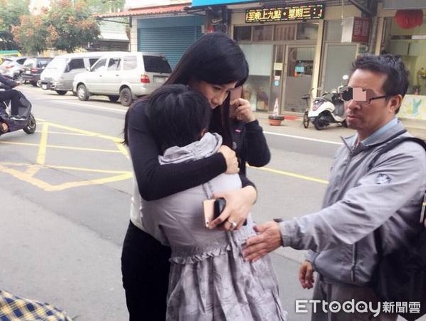 桃园市议员万美玲慰问遭小货车撞成重伤不治的男童家人。(图片来源:台湾“东森新闻云)