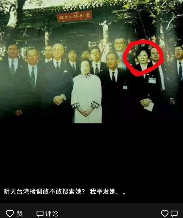 【环球时报-环球网报道 记者 范凌志】“明天台湾检调敢不敢搜索她?我举发她。”这是在新党青年委员会主席王炳忠于19日上午被台“调查局”以疑涉违反“国安全法”为由带走后,台湾网友在社交网络热传的图片中所附的反问,图片里“她”就是早年在大陆留影的蔡英文。事件发生后,两岸网友在各大社交网络上声援新党人士,讽刺民进党当局迫害统派人士的行径。