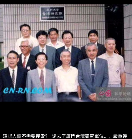 图注:1993年,谢长廷(一排左二)率团赴大陆访问,随团的还有民进党的姚嘉文(一排右一)、蔡同荣(三排右一)、柯建铭(三排右二)、李庆雄(二排左一)。图为众人访问厦门大学台研所时留影。(图片来源:台湾网友王裕庆朋友圈)