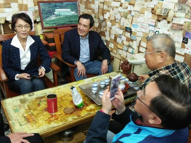 马英九跨年夜到六合夜巿泡茶。(图片来源:台湾《中时电子报》)