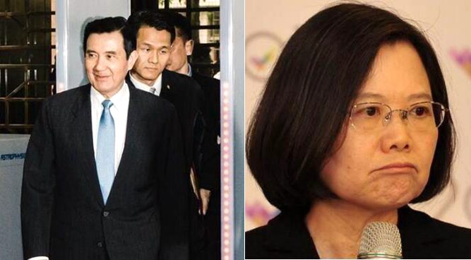 台当局前任领导人马英九(左)、台当局现任领导人蔡英文(右)。(图片来源:台湾《中时电子报》)