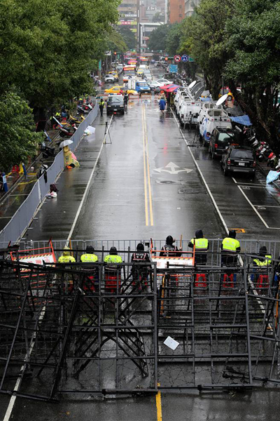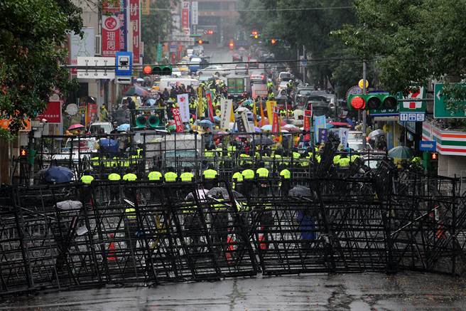 台湾“立法院”8日召开临时会处理“劳基法”修正案,警方管制“立院”周边道路,防止抗议劳团靠近。(图片来源:台湾“中国时报”)
