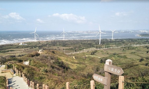 搭火车经过苗栗时,沿途会看到一根根的风力发电风车。(图片来源:台湾“东森新闻云)